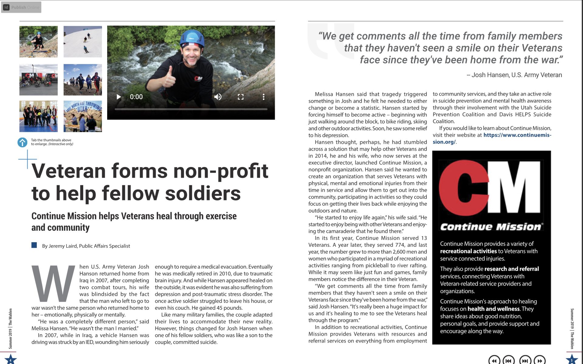 I led the design and production of The Wahlen, a quarterly magazine for the VA Salt Lake City Health Care System (VASLCHCS), targeting staff, Veterans, their families, and volunteers. The magazine aims to inform, educate, entertain, and inspire its readership by showcasing stories, updates, and resources relevant to the Veteran community. brandysims.myportfolio.com